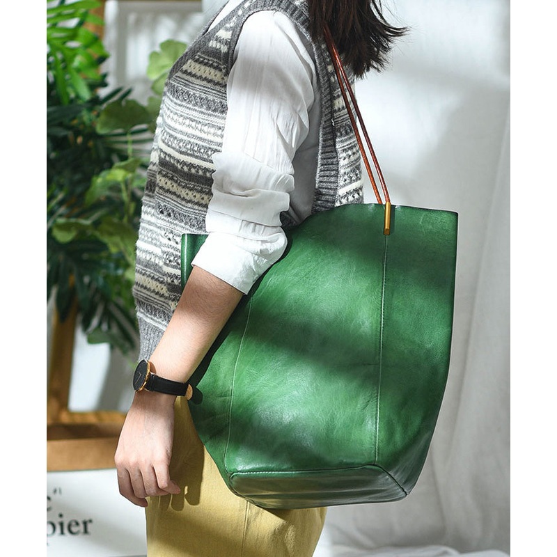 Boho Green Large Capacity Leather Bucket BagThis bag is made of fine Leather fabric.Measurement: 18cm/7.02" * 33cm/12.87" * 17.5cm/6.825"Zip up closure. Inside pockets.
