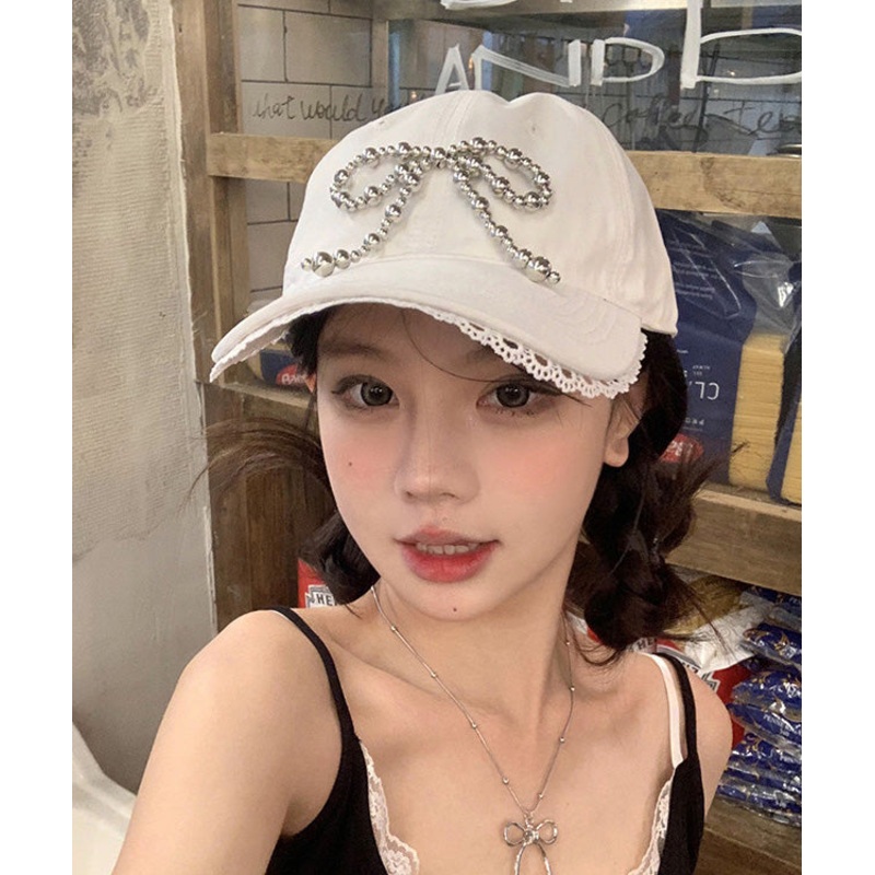 Chic White Lace Bow Versatile Baseball Cap HatMade of fine Cotton Blended.Hat Circumference: 58cm/22.62". Matches easily with daily hairstyle, dresses & Shirts