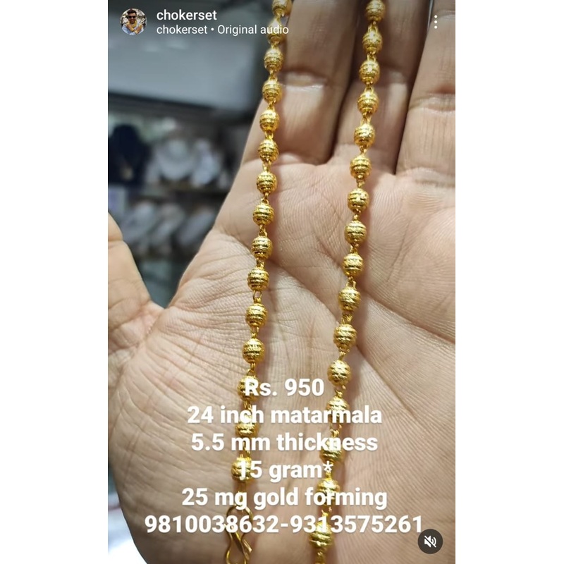Classy Matarmala SIZE 24 ( 60.96 CM ) 15 Gram 5.5 MM Thickness 25 Mg Gold Forming Jewellery (49120903)