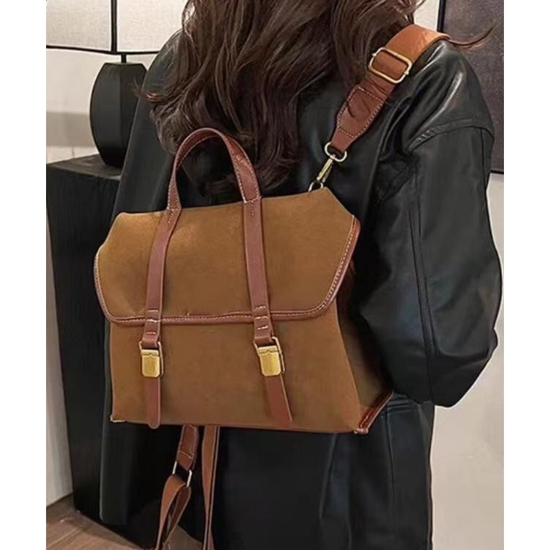 DIY Brown Large Capacity Patchwork Suede Versatile Backpack Bag