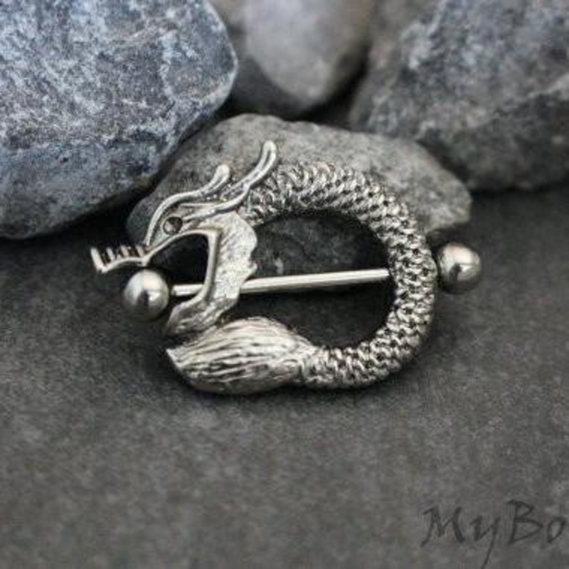 Product InformationProduct Type: 1 Nipple Ringin316L Surgical Stainless SteelGauge Size: 14 Gauge (1.6mm)Wearable Barbell Length: 13mmTotal Nipple Ring Size: 35mm(L)*25mm(W)*5mm(H)Dragon Nipple Piercing, 14G Nipple Ring, Tibetan Silver, Vintage, Body Jewel