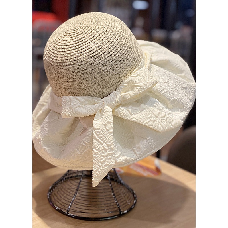 Fashion Beige Straw Woven Patchwork Floppy Sun Hat