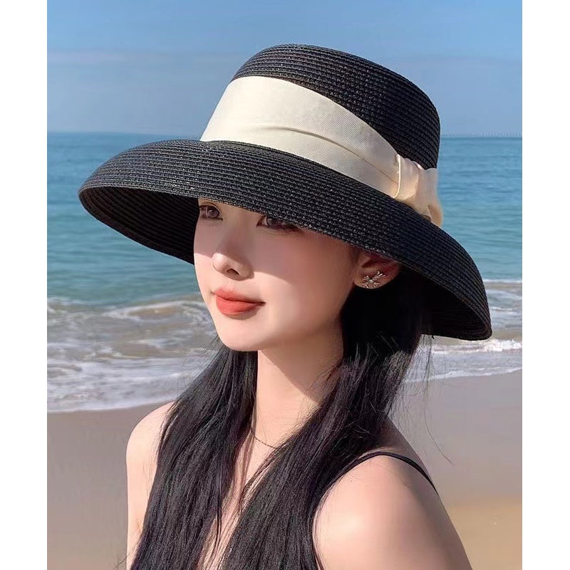 Be the first to review “Fine Black Bow Straw Woven Bucket Hat Sun Hat”