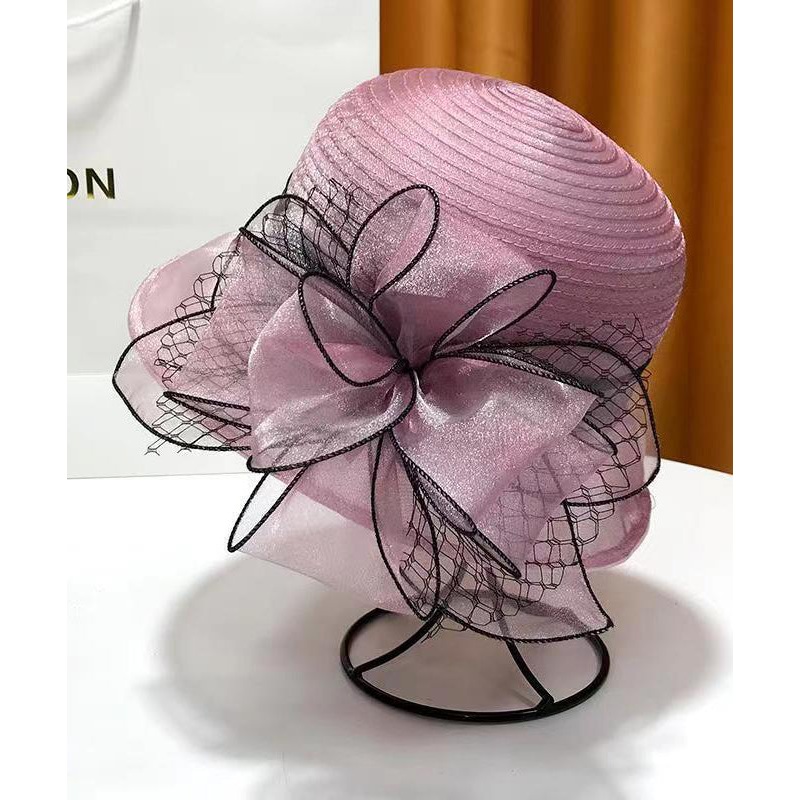 French Elegant Rose Organza Floral Cloche Hat