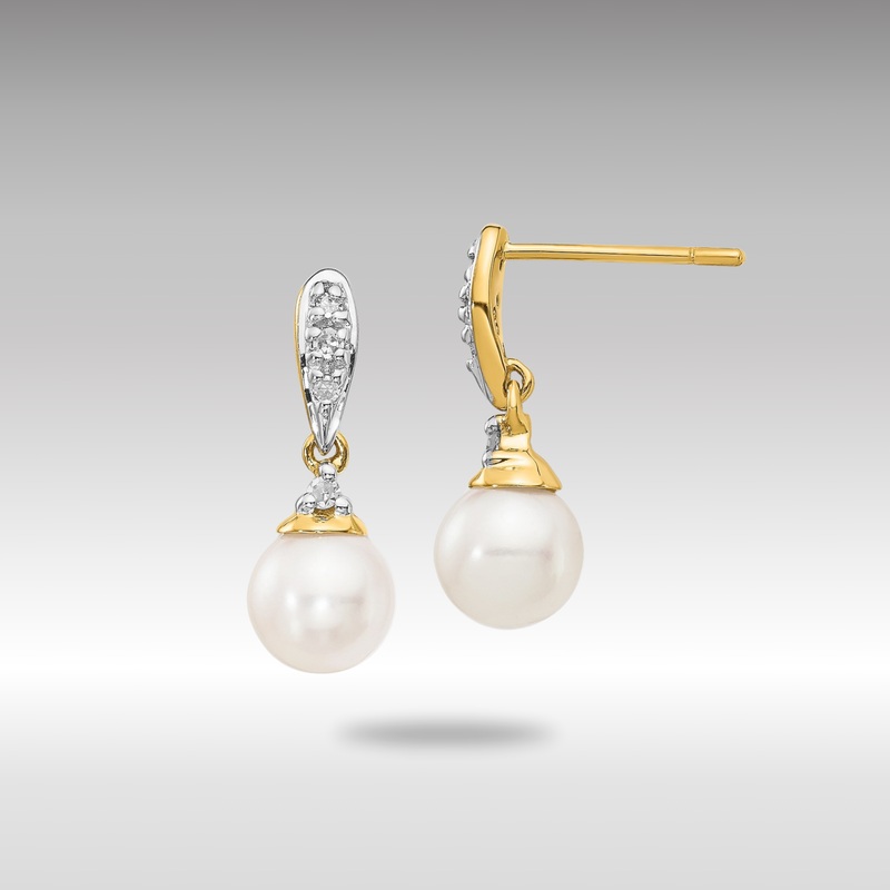 Gold 6-7mm White Round FWC Pearl .08ct Diamond Dangle Earrings – Model XE2497AA
