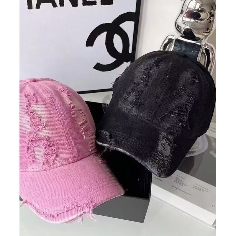 Korean Version Pink Gradient Versatile Ripped Baseball Cap Hat