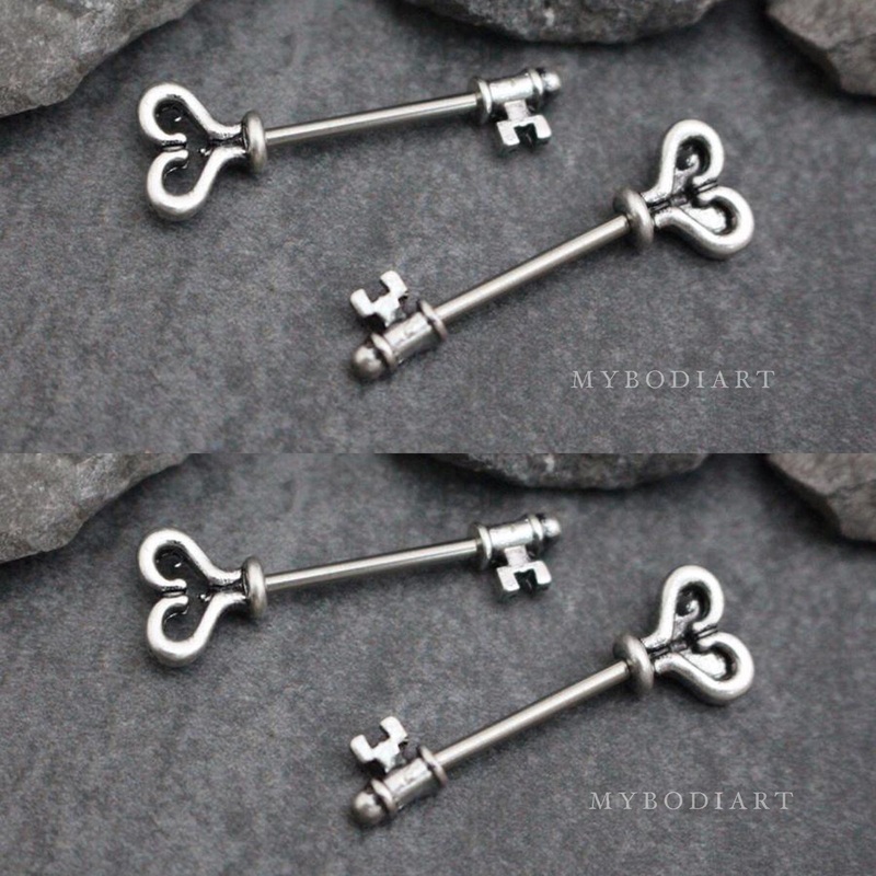 Key & Heart Nipple Rings