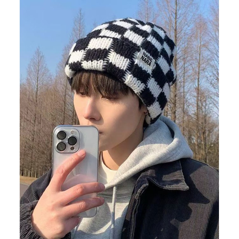 New Black Plaid Thick Warm Men Knit Bonnie HatMade of fine Knit Blended.Hat Circumference: 58cm/22.62". Matches easily with daily hairstyle, dresses & Shirts