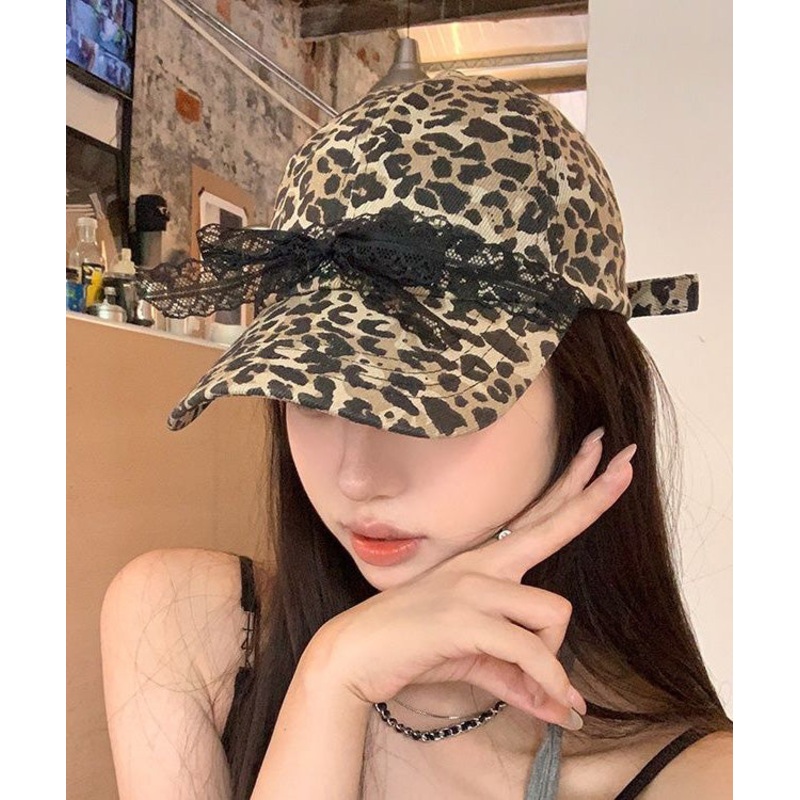 Original Leopard Print Lace Bow Baseball Cap Hat