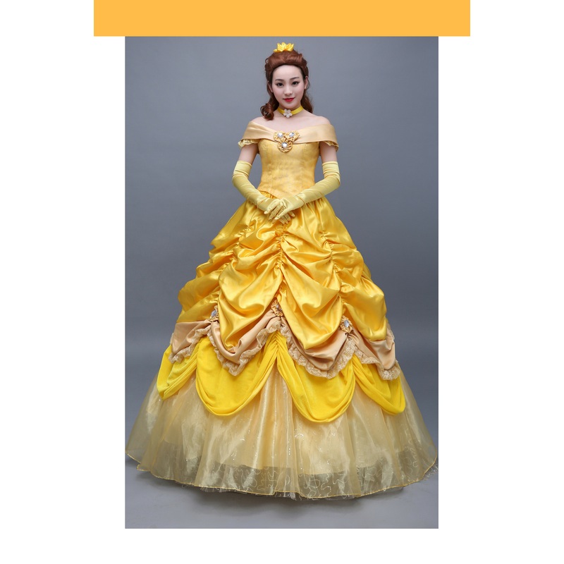 Princess Belle Satin With Organza Tulle Layer Beauty And Beast Cosplay Costume