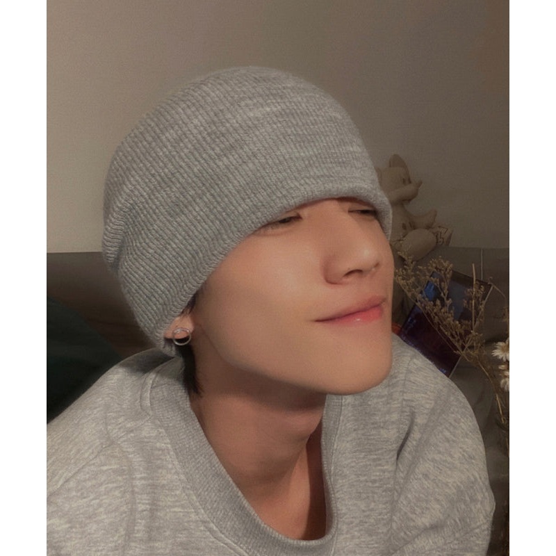 Simple Style Grey Cotton Knit Men Bonnie Hat