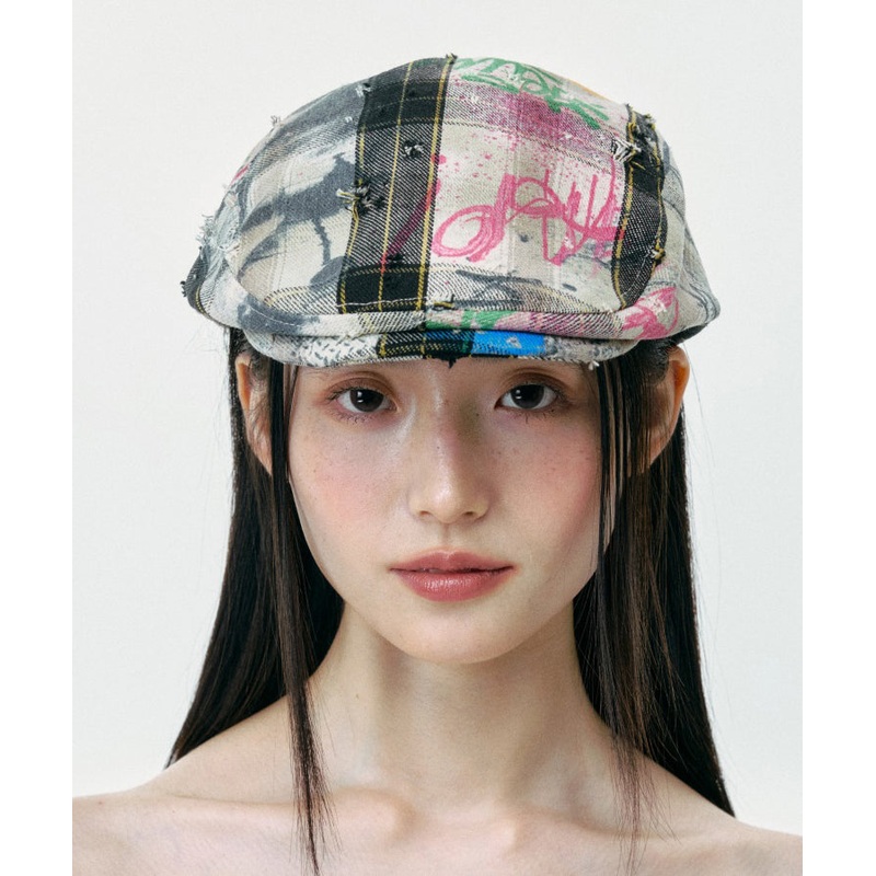 Streetwear Plaid Ripped Graffiti Breton Hat
