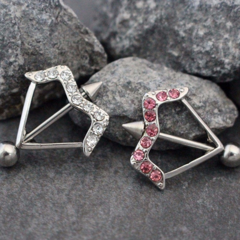 Nipple Piercing, Nipple Shield, Jewelry, Ring, Barbell, Bar, Jewellery, Arrow, Arrowhead, Crystal, 14 Gauge, 14G, 316L Surgical Steel