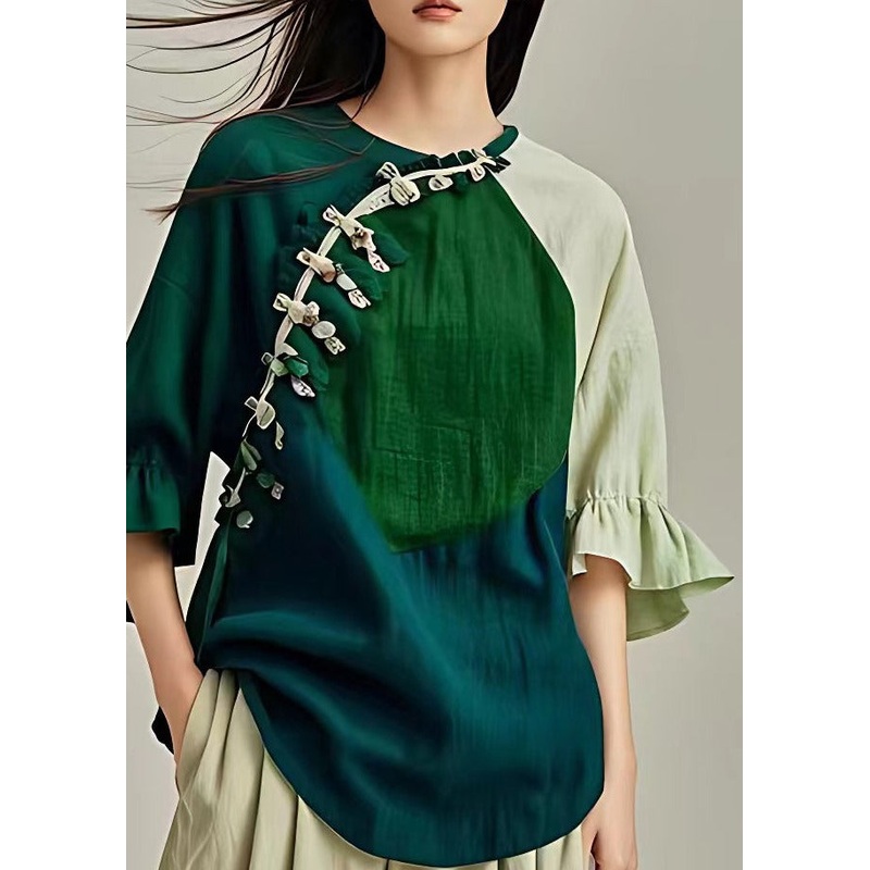 Be the first to review “Stylish Green O Neck Button Cotton Blouses Flare Sleeve”